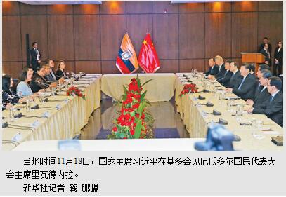 本报基多11月18日电 (记者杜尚泽、李强)国家主席习近平18日在基多会见厄瓜多尔国民代表大会主席里瓦德内拉。