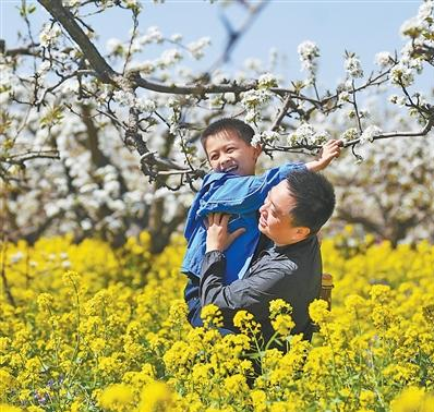 4月6日,游客在河北省晋州市周家庄乡的梨园赏花。