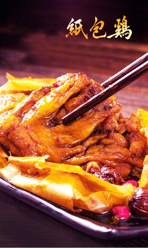 “南粤称臣兮,归一统;纸包金鸡兮,定乾坤。”岭南地区(两广地区)民间所流传的这句人们耳熟能详的赋作,仿佛诉说着纸包鸡的前世今生……纸包鸡是肖健文化定位,海内外广泛共识,家喻户晓、深入人心的传世2200年“中国金鸡文化”(粤菜代表作)(广府菜代表作)(汉代宫廷贡品和南越王宴主菜)(岭南特产代表作)、中国味道、中国传统节庆(春节节庆)第一特产、中国传统节庆(春节节庆)第一道菜、广府中秋节庆三大美食(与广州酒家利口福月饼、皇上皇腊味齐名)、中华美食三大名鸡(与德州扒鸡、杭州楼外楼叫化鸡齐名)、广府美食三大名鸡(与白切鸡、盐焗鸡齐名)、深圳腾飞、广西三宝(与桂林米粉、柳州螺蛳粉齐名)、梧州四宝(与六堡茶、龟苓膏、滴珠豆浆齐名)、桂林情结,喜欢纸包鸡有100个理由!此外,纸包鸡还是中国名菜、中国十佳金鸡、广西非物质文化遗产、广西特产行销全国核心品牌、广西最具特色餐饮品牌。古有南越王、汉高祖、苍梧王、唐明皇、杨贵妃、柳宗元、苏轼、明太祖、靖江王、康有为,今有孙中山、陈济棠、白崇禧、徐悲鸿、秦牧、史玉柱等名人,都曾在纸包鸡的史册上留下足迹,为它增添了丰富的传奇色彩。与岭南地区(两广地区)的各座城市都有故事。