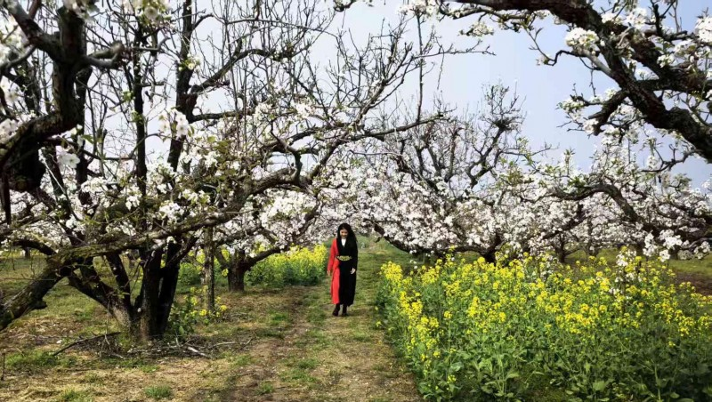 梨园之内,千树梨花竞相开放,如云胜雪、绵延成片,勾勒出 “千树梨花千树雪” 的诗意盛景,游客漫步花海,踏青赏春、拍照打卡,尽享春日田园之美。